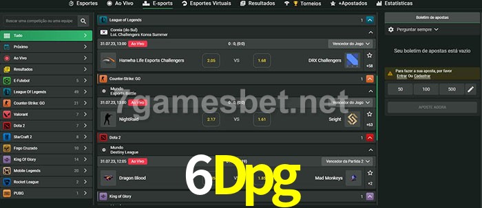 A aposta 6Dpg oferece aos jogadores a experiência mais conveniente de apostas em eSports!